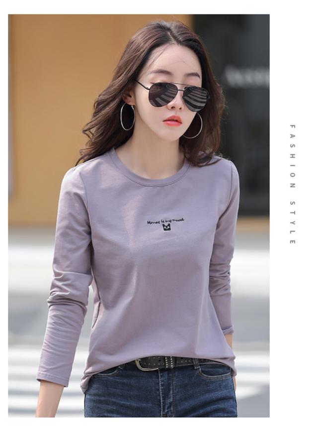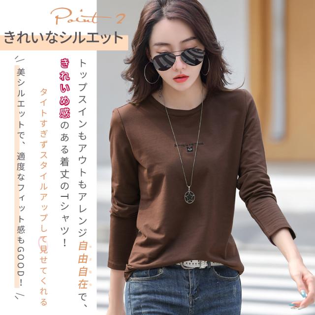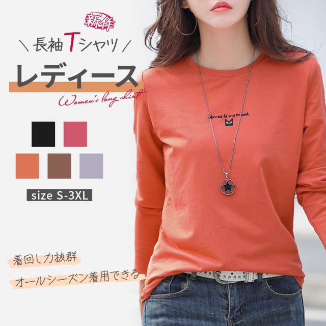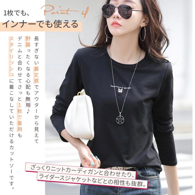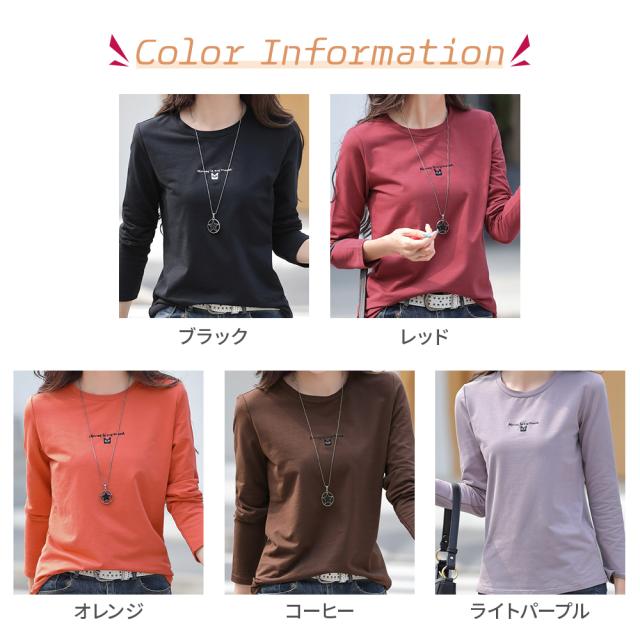 春新作 カットソー 長袖 レディース 長袖Tシャツ 刺繍ロゴ 可愛い猫柄 tシャツ コットン 丸首 綿 シンプル トップス カジュアル 春服 秋服