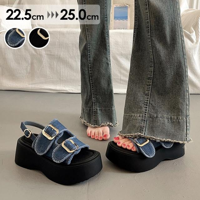 厚底サンダル 安定感 サンダル レディース かかとあり 夏 ベルト 靴 女性 大人 美脚 シューズ 大きいサイズ 厚底 シンプル 歩きやすい スストラップサンダル 黒 22.5-25.0