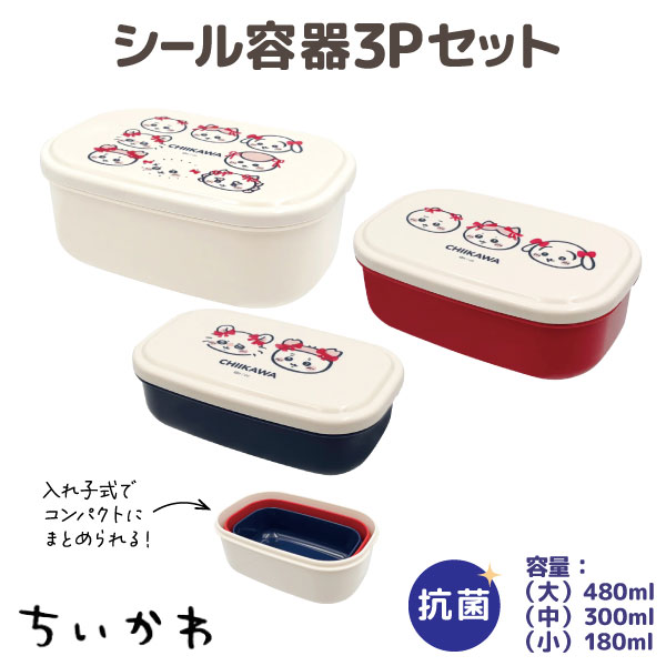 ちいかわ 電子レンジOK シール容器 3Pセット リボン柄 ランチBOX お弁当箱 うさぎ ハチワレ モモンガ シンプル かわいい