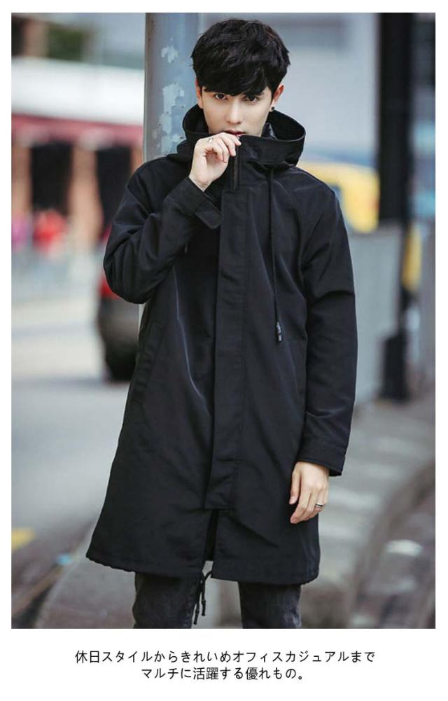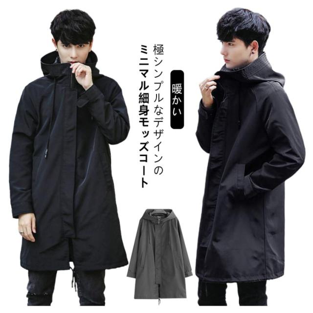 冬 秋冬 スリム 暖かい 秋 スタンドネック コート フード付き 軽量 厚手 ミリタリーコート アウター ロングコート ミドル丈 中綿 モッズコート 無地 シンプル ミニマル 防寒 保温 細身 モッズコート 中綿コート 学生 通勤 通学 黒 ブラック 大きいサイズ