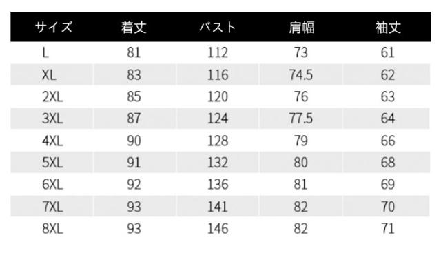 | サイズ | L XL 2XL 3XL 4XL 5XL 6XL 7XL 8XL |