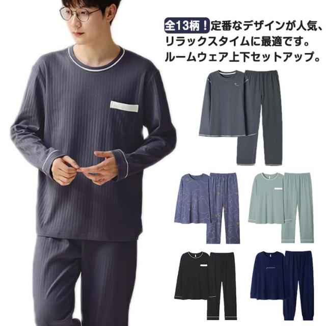 長袖Tシャツ 綿 ルームウェア 父の日 寝間着 薄手 紳士 長袖 秋 大人 冬 上下セット 秋用 パジャマ お洒落 長ズボン 長ズボン 無地 可愛い 部屋着 男性 大きいサイズ 春夏 冬 ルームウェア おそろい