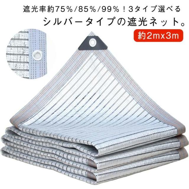 遮光ネット シルバー生地 約2mx3m 遮光率 約75%/85%/99% 1M間隔ハトメ付き 日除けネット 紫外線対策 熱対策 暑さ対策 節電グッズ