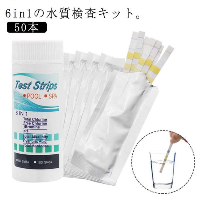 6in1 50本 水質検査用テストシート 水テストキット アクアリウム 水質検査 水槽 水質検査 水質検査試験紙 屋外 水槽 プール 温泉 水質検査
