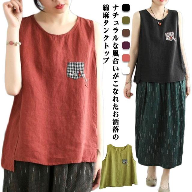 ナチュラル リネンキャミソール 刺繍 キャミソール タンクトップ トップス リラックス レディース 綿麻トップス 肌着 綿麻 夏 さらさら キャミソー