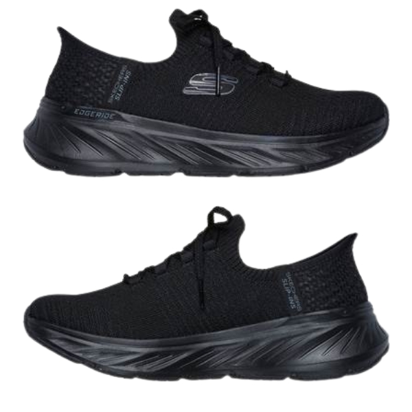 スケッチャーズ スリップインズ スニーカー レディース スリッポン ウォーキングシューズ 靴 ブラック 黒 ネイビー 紺 履きやすい 脱ぎ履き クッション ストレッチニット ハンズフリー SKECHERS Relaxed Fit エッジライド 150470