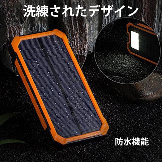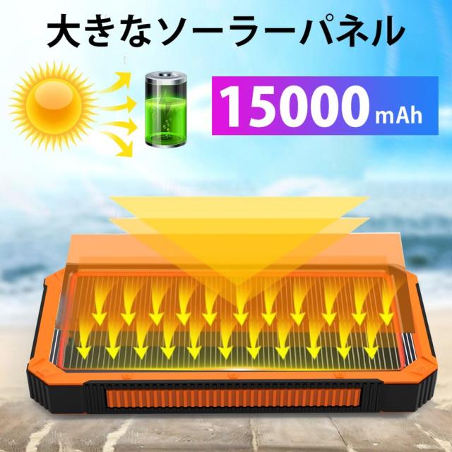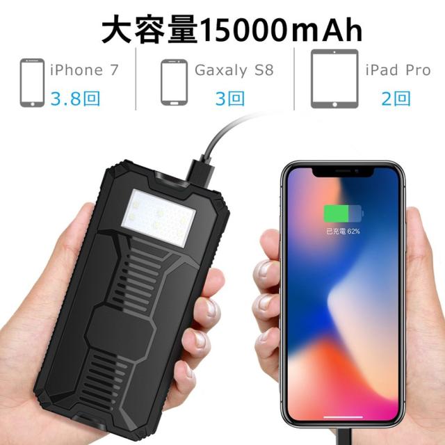 ソーラーモバイルバッテリー チャージャー ソーラー充電器 大容量 15000mAh 軽量 アウトドア 2台同時充電 iPhone 地震 防災 防塵 耐衝撃