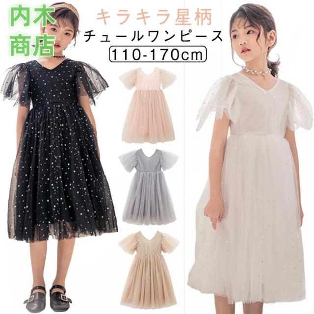 ピアノ 発表会 ロングワンピース 膝丈 フレア フォーマル ふわふわ ジュニア ふんわり感 黒 夏ワンピ 子供 ドレス 小学生 女の子 キラキラ チュールワンピース プリンセス ワンピース 入学式 半袖