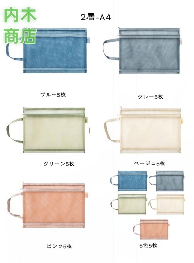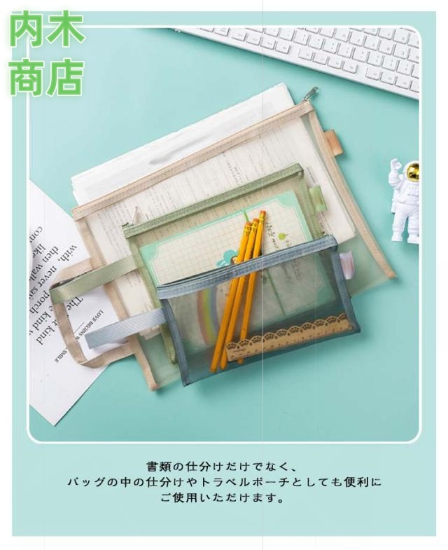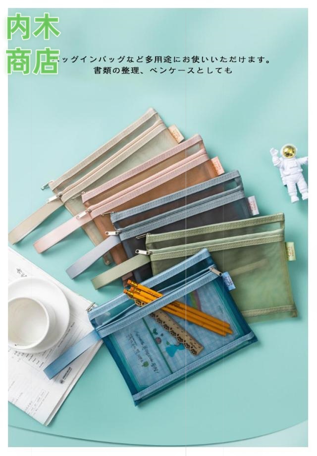 事務用品 旅行 軽量 小物入れ 書類ケース 本 ファイル メッシュケース 大容量 クリアフォルダー 書類入れ ファイル フォルダー トラベル ストラップ付き 持ち運び 受験用 メモ帳 ポーチ 文房具 【5個セット】4 ファスナーケース