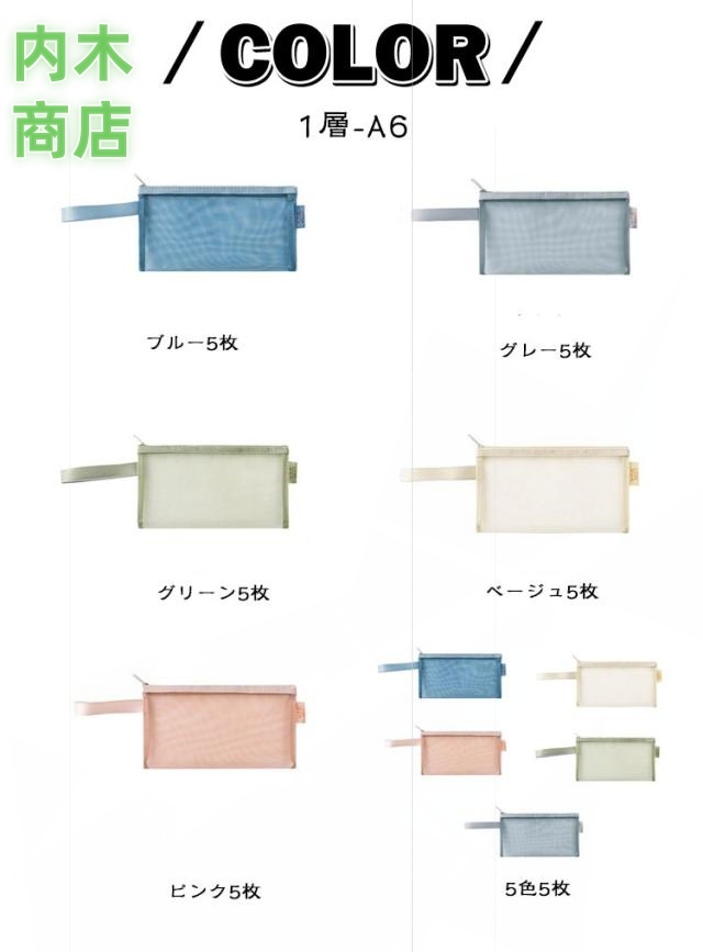 | 【A4 メッシュケース】【5枚セット】 シンプルなデザインのメッシュケースです。 バッグインバッグなど多用途にお使いいただけます。 書類の整理、ペンケースとしても◎ 文具の収納や領収書・カード類の整理に、小物入れにと、多目的にご使用いただけます。 軽くて持ち歩きやすく、メッシュ素材なので中身が見えます。 口開きが広く、 物の出し入れがしやすくなっております。 ストラップが付いているので持ち運びが楽に行えます。 書類の仕分けだけでなく、バッグの中の仕分けやトラベルポーチとしても便利にご使用いただけます。 | |