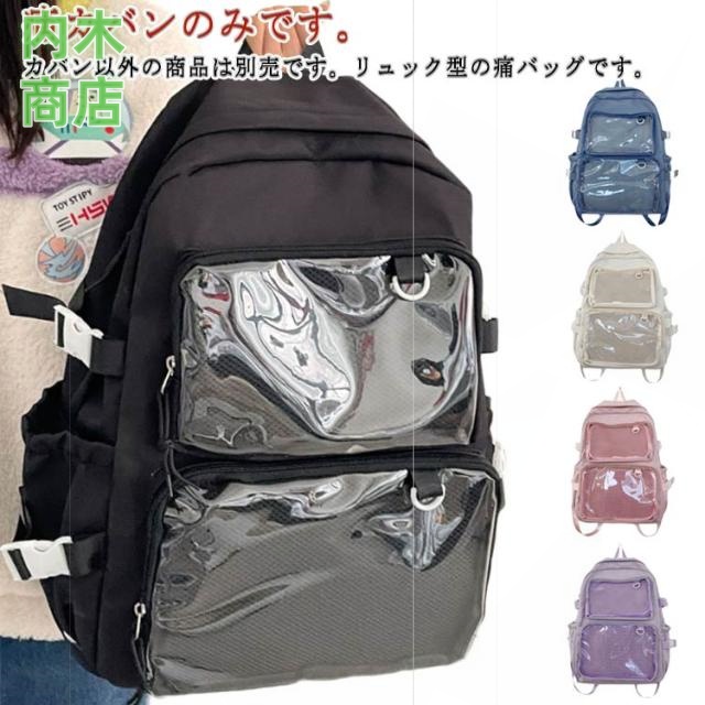 | 痛カバンのみです。カバン以外の商品は別売です。リュック型の痛バッグです。 通勤、通学、お出かけに大活躍のバッグです。片面がクリアポケットになった痛バッグ。 缶バッジやぬいぐるみなど推しのグッズを入れて一緒にお出かけできる大容量の防水トートバッグです。♪ シンプルでおしゃれなゲージバック♪フロントに透明ポケットで見せたいアイテムを自由にアレンジできます。 好きなアイドルやキャラクターの写真、缶バッジ、ストラップ、ぬいぐるみ、萌グッズなど入れて一目瞭然です。♪ 大容量のA4サイズ、雑誌 、ipad、折り畳み傘や本など収納可能ので、通学や出かけにもおススメです。 | |