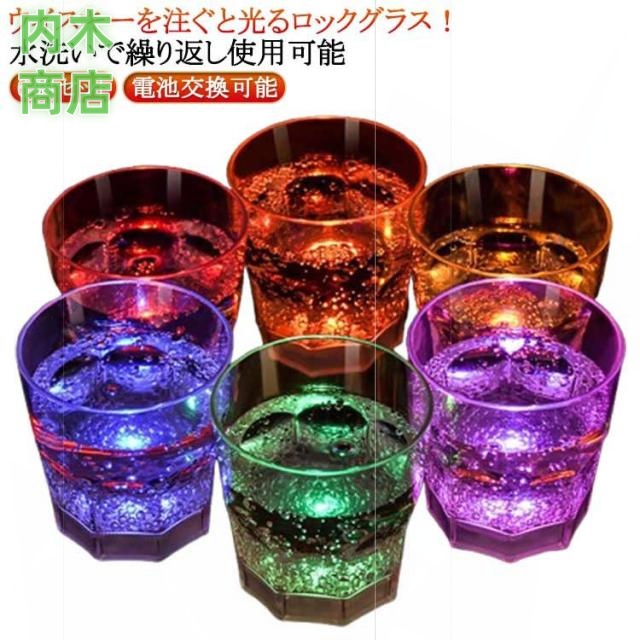 | 【6個セット】【電池交換可能】【水洗いで繰り返し使用可能】【ウイスキーを注ぐと光るロックグラス!】 センサータイプのこのグラスは、ドリンクを注ぐと光り出します! お酒を注ぐと気泡がLEDの光で美しく輝きます! バランスのとれた美しいデザイン!結婚式・クラブパーティー・ホームパーティーと使うシーンを選びません! パーティー・イベントを新しい光りの演出で盛り上げちゃってください♪ 一度使うともう普通のグラスでの乾杯では物足らなくなること間違いなし! パーティーやイベントの盛り上げアイテムとして大人気のセット商品です! | |