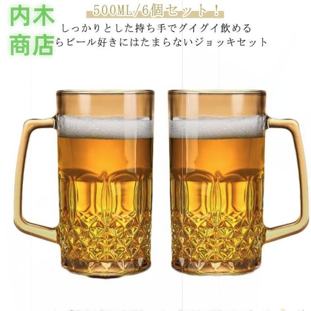 おしゃれ マグカップ 大容量 持ちやすい コップ ジョッキ 取っ手付き カップ 6個セット ジョッキグラス ギフト ビールジョッキ ビアジョッキ ガラス 500 ビール 父の日 プレゼント 結婚祝い グラス クリア ビアグラス 飲食店 家庭用 内祝い