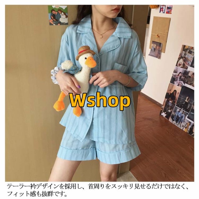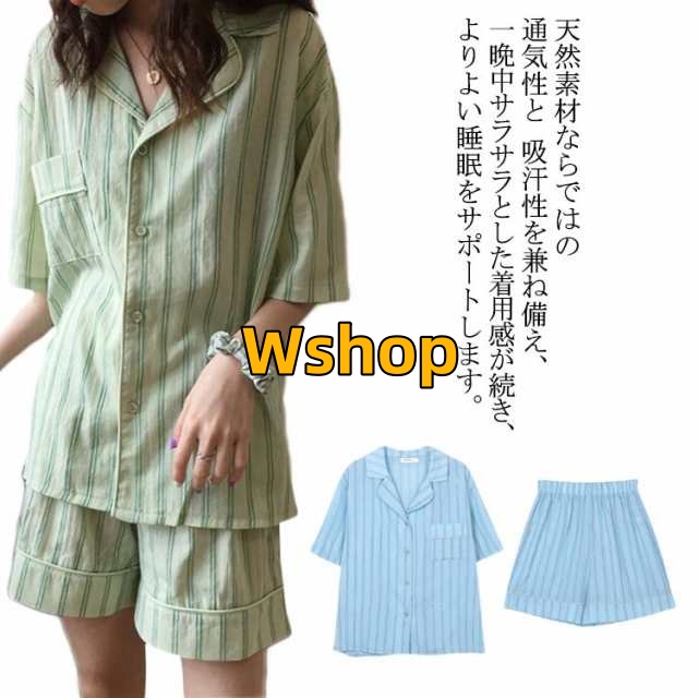 軽量仕様 売上急増中 短パン おうちコーデ 夏 パジャマ 寝巻き ストライプ ショートパンツ ルームウエア 涼しい ナイトウエア 部屋着 ゆったり 半ズボン 半袖 薄手 綿 春 大きいサイズ 女性用 上下セット レディース 大人 テーラー襟 送料無料