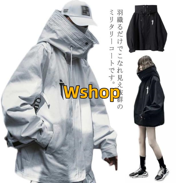 人気急上昇 レビュー高評価 かっこいい アウター ミリタリーコート コート ロングパーカー マウンテンパーカー ホワイト フード付き ブラック 男女兼用 ハイネック カップル服 ゆったり ドロップショルダー ミリタリー パーカー ジャケット モッズコート メンズ 今だけ限定