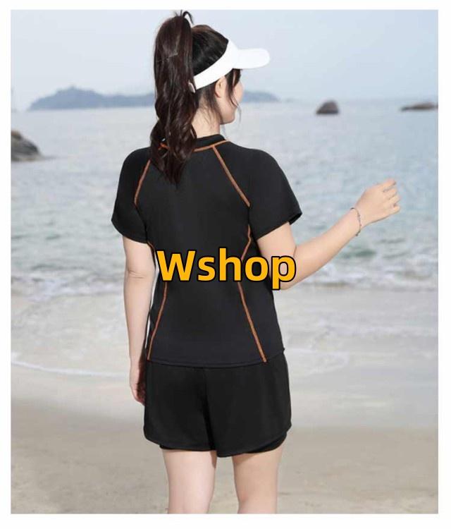 半袖 ショートパンツ 水着 リゾート ブリーフ お腹カバー 女性 半袖 ビーチ ハイエンド 女性 夏 プール レディース 水着 水陸両用 ウエスト フィットネス水着 スプリット ラウンドネック カバー ボクサー