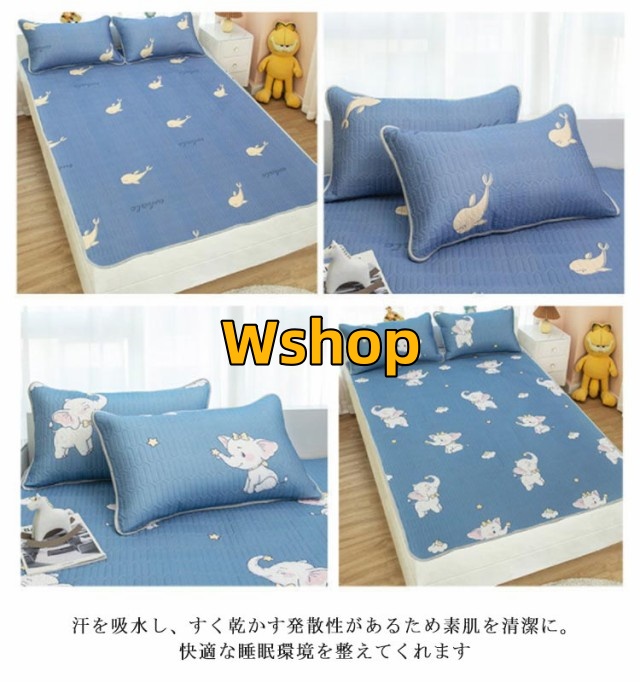 | さらっと爽快!可愛いひんやり枕パッド! いつも使っている敷ふとんの上に乗せて使うだけの手軽さで夏仕様に早変わり。 表面生地が冷たく感じる接触冷感です。 丸いぽこぽことしたキルティングは凹凸があり体と敷きパッドの密着面が少なくなります。 その凹凸に風が通るのでさらっと爽快に過ごせます。 サイズ展開も多くあらゆるライフスタイルの方にお選びいただけます! 家庭用洗濯機で丸洗いできるのでいつでも清潔な状態に。 | |