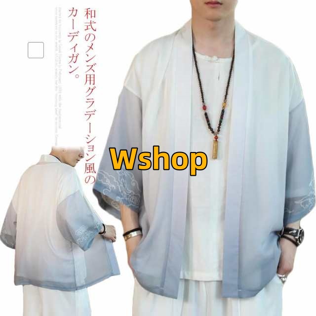 羽織 和風 ファッション トップス 冷房対策 七分袖 春夏 日焼け 和式パーカー シンプル おしゃれ 送料無料 アウター 大きいサイズ カーディガン メンズ グラデーション風 夏服 カジュアル ゆったり M?5XLサイズ!