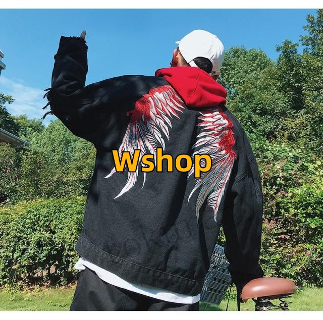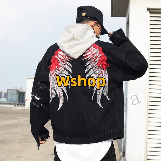 刺繍 春物 長袖 メンズ 新作 ジージャン 翼 ジャン カジュアル 学生 春 ストリート ダメージ ショート丈 デニムジャケット ゆったり アウター
