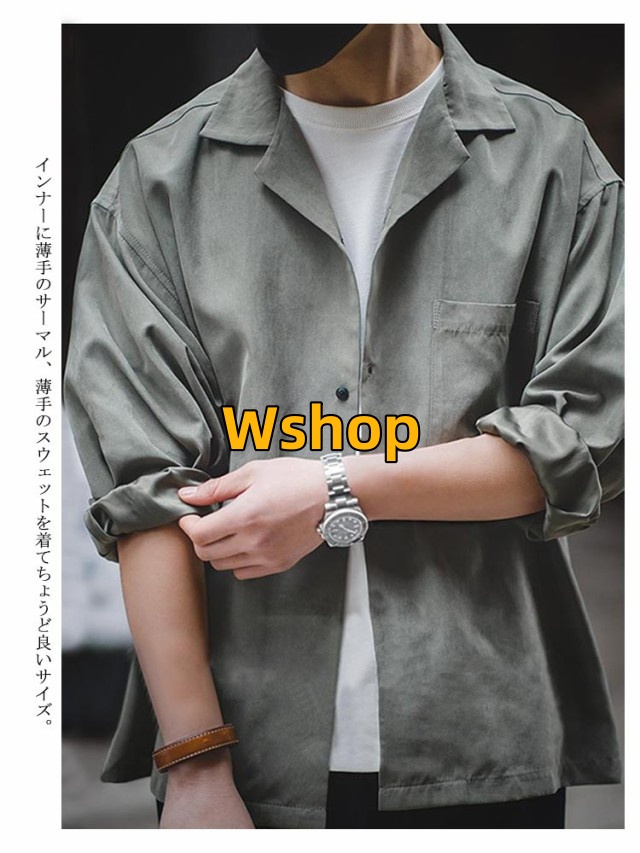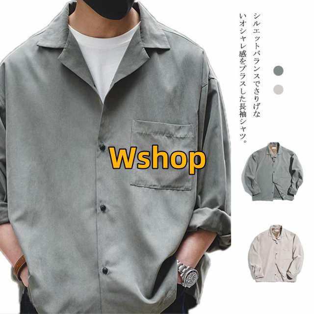 アウター 羽織 オープンカラーシャツ スエード調 カジュアルシャツ 薄手 コート おしゃれ メンズ 長袖 シャツジャケット ドロップショルダー 無地 長袖 【送料無料】シャツ 開襟シャツ