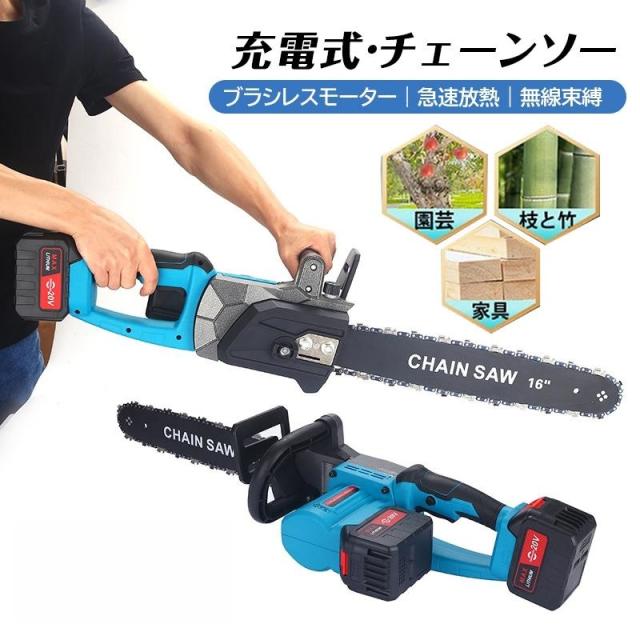 チェーンソー 充電式 安全ロック 16インチ ハンディチェーンソー 充電式チェーンソー 充電式ハンディソー コードレス 電動チェーンソー 大型チェーンソー