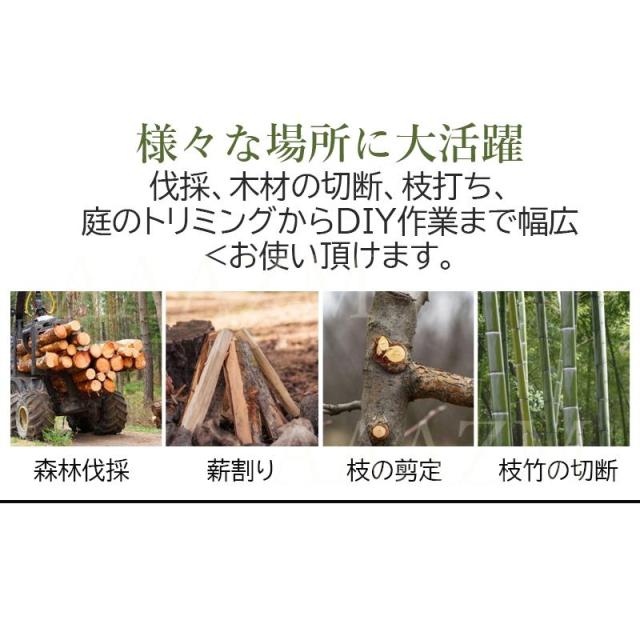 このチェーンソーは、家庭用および屋外での伐採や剪定作業に理想的なツールです。