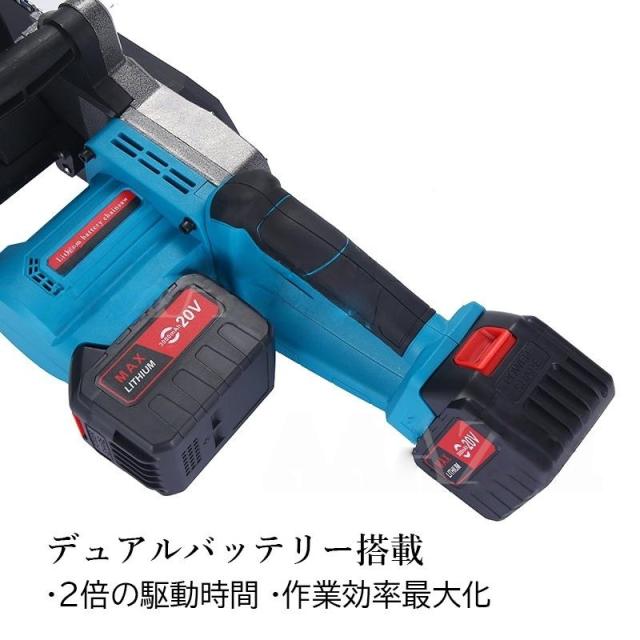 大容量バッテリー搭載:長時間の使用を可能にする強力な充電式設計で、伐木や剪定作業をスムーズに行えます。
