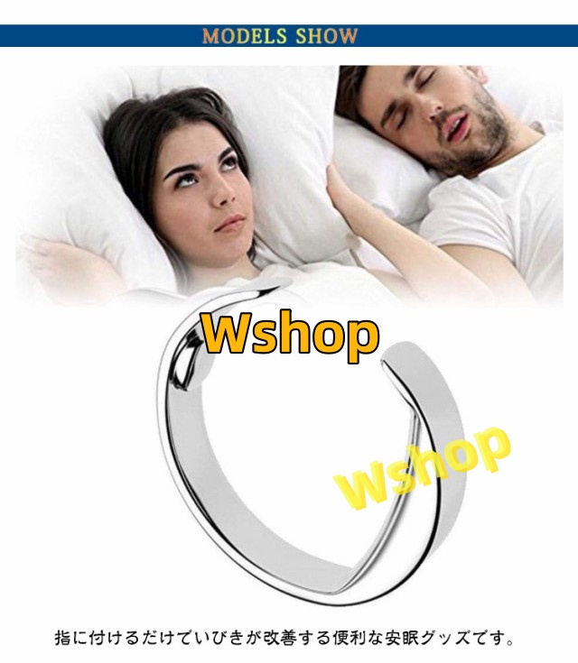 | 【いびき防止リング】【S M L】 指に付けるだけでいびきが改善する便利な安眠グッズです。 寝る前に指に付けるだけ。 呼吸する時に上気道(のど、鼻)の狭い部分に空気がぶつかり、粘膜が振動することで起きる呼吸音がいびきです。いびき防止リングを使うことで鼻からの空気の通りがスムーズになり、いびきを軽減できます。 小指の第二関節の下にある「鼻腔を広げるツボ」。リング内側にある突起が、小指のツボを刺激し、鼻孔の狭さを緩和させます。 | |