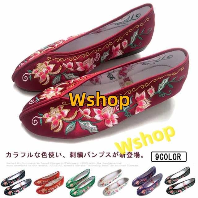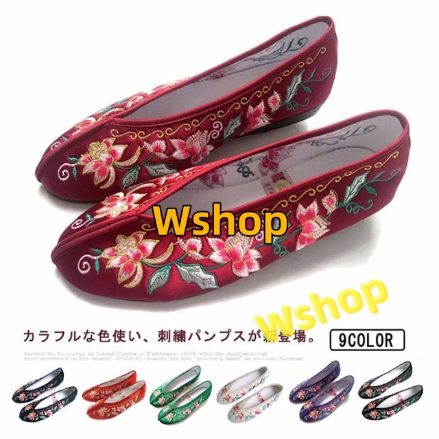 収納便利 ランキング常連 フラット ぺたんこペタンコ 送料無料 チャイナ 柔らかい 中華風 婦人靴 ぺたんこ靴 履きやすい パンプス 北京布靴 チャイナシューズ レディース 台湾シューズ カンフーシューズ フラットシューズ 花柄刺繍 送料無料
