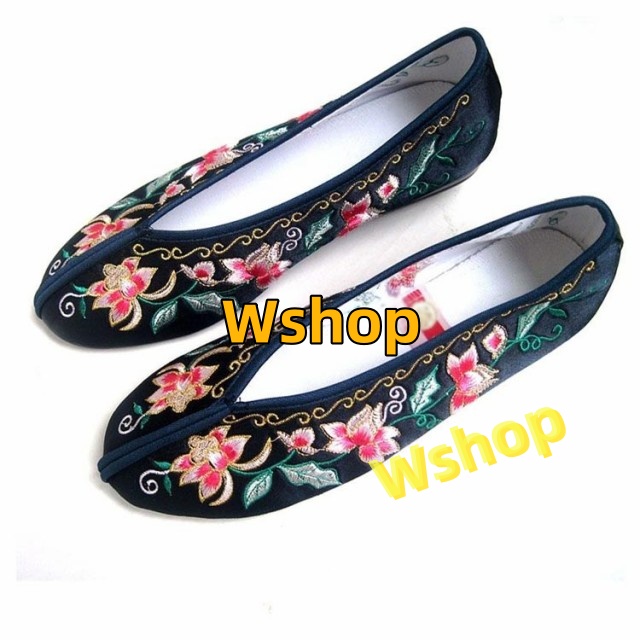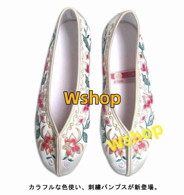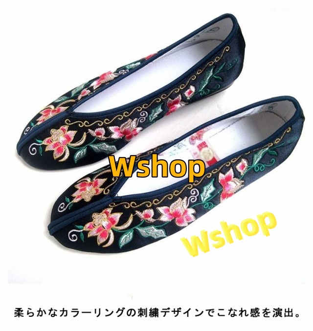 チャイナシューズ 中華風 台湾シューズ フラット 送料無料 柔らかい パンプス ぺたんこペタンコ 履きやすい チャイナ ぺたんこ靴 婦人靴 カンフーシューズ 花柄刺繍 フラットシューズ 北京布靴 レディース