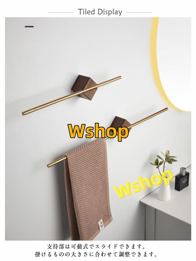 | タオル掛けハンガー。 支持部は可動式でスライドできます。掛けるものの大きさに合わせて調整できます。 高品質素材☆天然胡桃の木 と優れたアクリルを採用し、精巧加工で、ハンドメイドならではの質感がいっぱい、高級感であり、和室や洋室にも最適で、インテリアとしてもお部屋をおしゃれに可愛く飾ります。 適応場合☆収納をこのタオルかけは浴室、トイレ、キッチン、バルコニー、客室などいろいろな場面に適用します。 | |