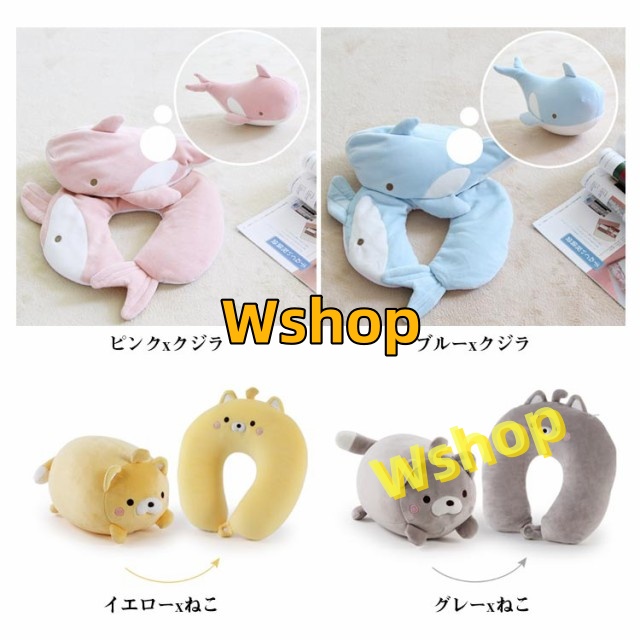 型 2 もちもち 携帯枕 U型マクラ 首まくら クッション ペンギン ピロークッション クジラ 首枕 ピロー 抱き枕 ビーズ 猫 子供 ネックピロー ネックピロー U字 ネックピロー 携帯 ぬいぐるみ キッズ クッション
