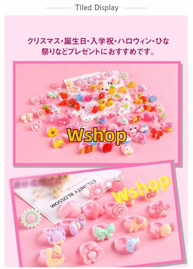 | こども用リング100個セットです。 クリスマス・誕生日・入学祝・ハロウィン・ひな祭りなどプレゼントにおすすめです。 写真映えもバッチリなので記念撮影にも♪ かわいいものが好きなお子様にぴったりのギフトとなっております。 | |