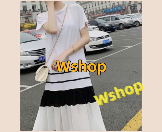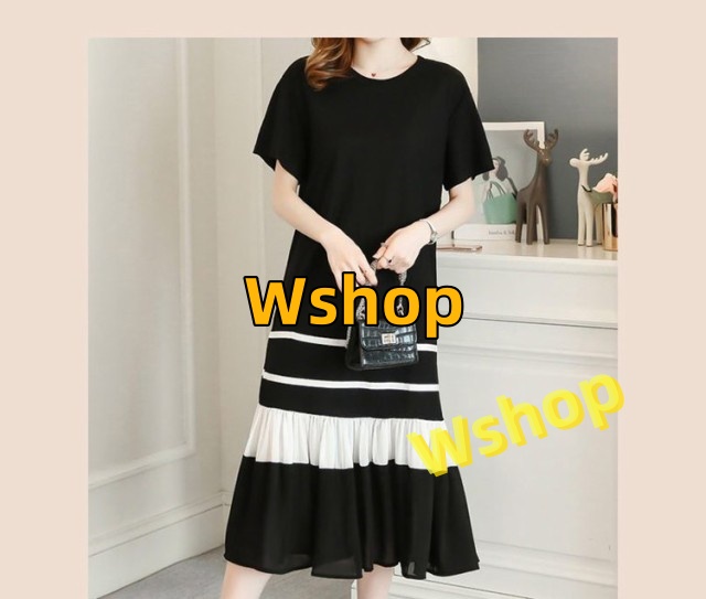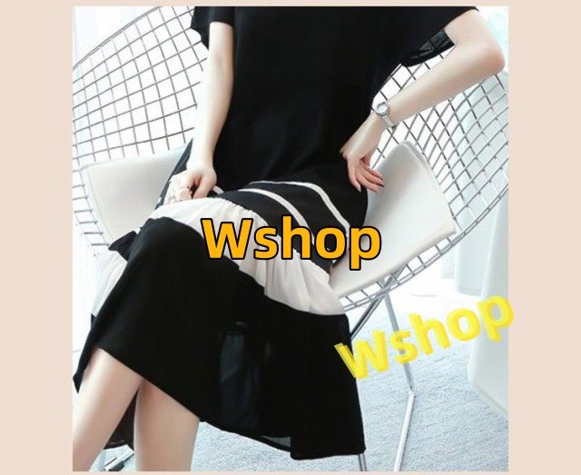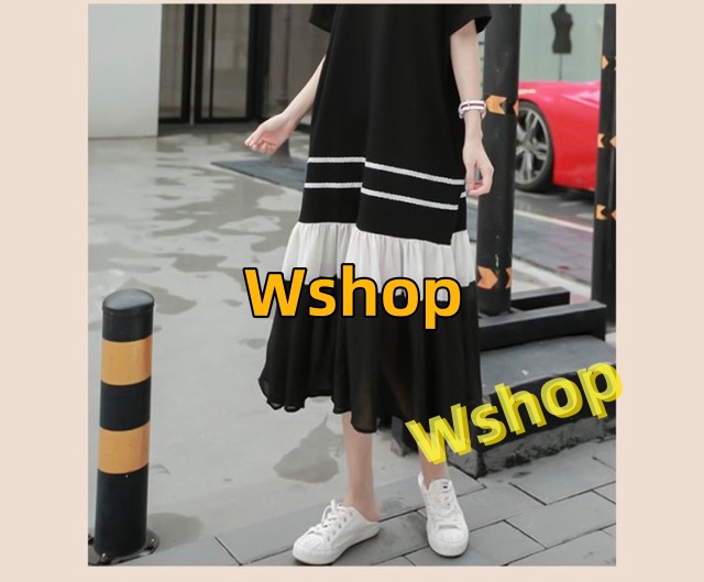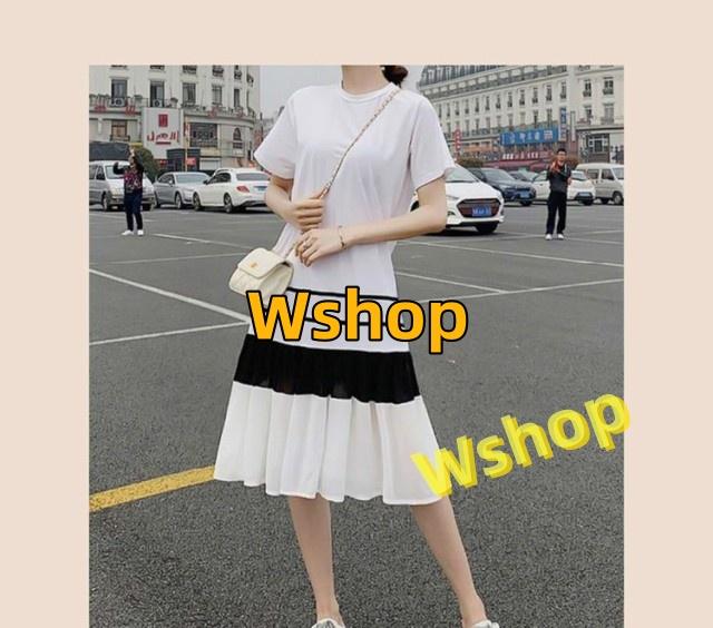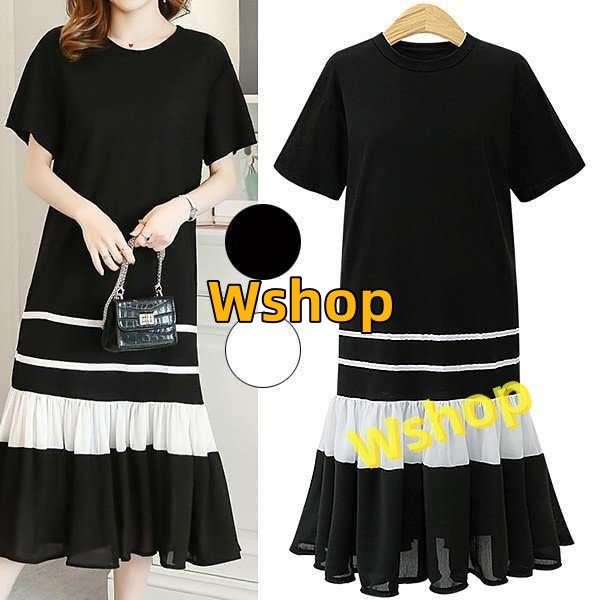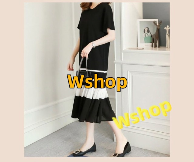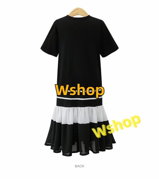 白 黒 体型カバー ゆったり 40代 半袖 tシャツ オシャレ お出かけ 切り替え 夏新作 ワンピース 膝丈 ロングワンピース レディース ロングTシャツ