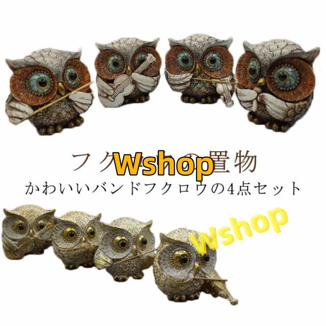 | かわいいバンドフクロウの4点セット ふくろうの仕草、表情など、良く作られていて雰囲気抜群です。 ちょっとしたお部屋のアクセントに、玄関やガーデニングの置物として 細部まで拘った作りで本物趣向の方にも満足出来る世界を演出しています。 | |