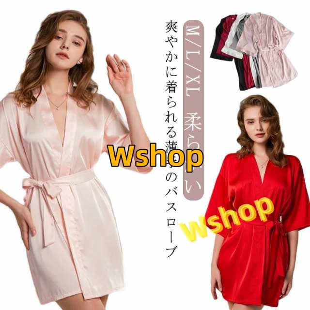 バスローブ 柔らかい 涼しい 薄手 浴衣 ウエスト紐 光沢感 寝巻き 接触冷感 ネック 部屋着 夏新作 ミディアム丈 大人女性 パジャマ 寝間着 ゆかた 高級感 ギフト 無地バスローブ 薄手 レディース ルームウエア 五分袖 上品 風呂上げ ナイトウエア プレゼント 送料無料