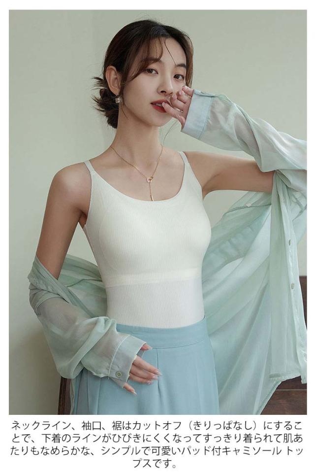 | サラッとした薄手の接触冷感素材なのでひんやりと気持ちよく、しかも吸湿性と放湿性が優れて吸汗速乾! ジメジメした日でも快適な着用感です。 無縫製で動きを妨げない、優れた伸縮性があり、素肌に優しくフィットします。 肩紐はしっかり太め、安定感のある幅広の肩紐で、ブラ紐を隠し、チラッともみせない安心設計です。 ネックライン、袖口、裾はカットオフ(きりっぱなし)にすることで、下着のラインがひびきにくくなってすっきり着られて肌あたりもなめらかな、シンプルで可愛いパッド付キャミソール トップスです。 ノンワイヤーだからおうち時間も快適に過ごせます。 | |