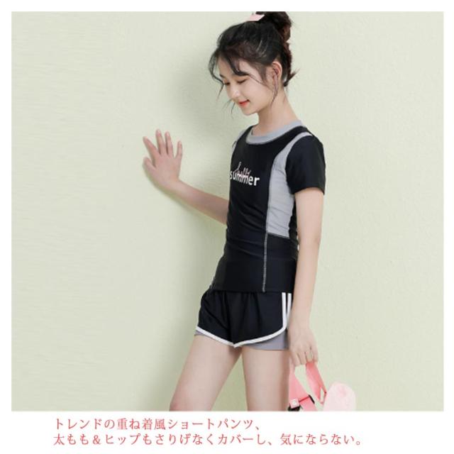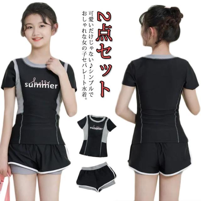 2点セット 子供 水着 キッズ 水着 女の子 セパレート 水着 スクール水着 タンキニ 小学生 中学生 水泳授業 半袖 ショートパンツ ラッシュガード スクール ジュニア 水着 子ども用 みずぎ スイミング 学校 プール