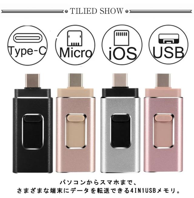 フラッシュメモリ usbメモリ 128GB 大容量 超小型 4in1 スマホ&パソコン兼用 OTG フラッシュ ドライブ iPhone/Android/Type-C/PC対応 iPad iOS micro 用USBメモリー iphone用フラッシュメモリ iphone usbメモリー