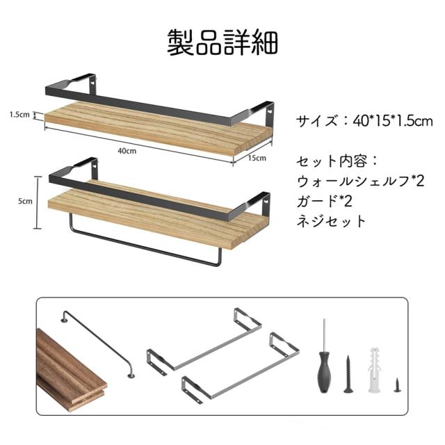 ウォールシェルフ 2個セット ガード付き 取り付け簡単 壁を傷つけない 吊り下げ棚 壁掛け 飾り棚 壁掛けラック ウォールラック 洗面所 キッチン トイレ 寝室 壁収納 棚 バスルーム リビング 壁面収納 本棚 北欧風 ナチュラル 新生活 プレゼント