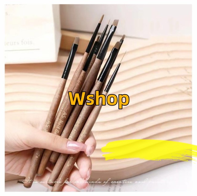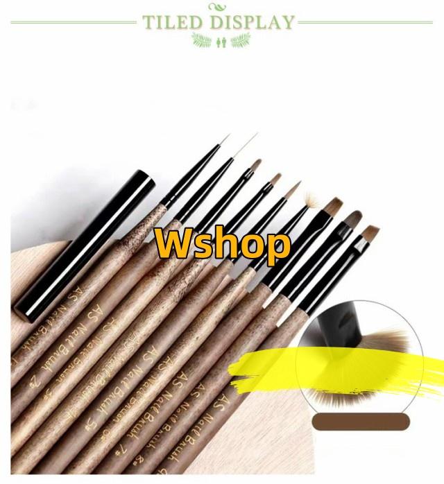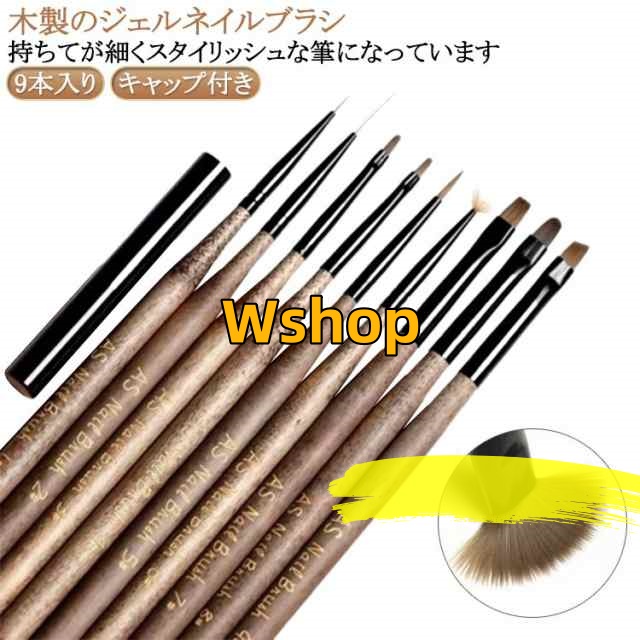 | 9本入り 木製のジェルネイルブラシ 持ちてが細くスタイリッシュな筆になっています | |