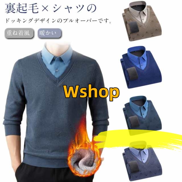 スウェット 暖かい 裏起毛 シャツ 異素材切替え 大人 カジュアル 防寒 メンズ 春 シャツドッキング 秋 プルオーバー カットソー フェイクレイヤード 裏起毛 長袖