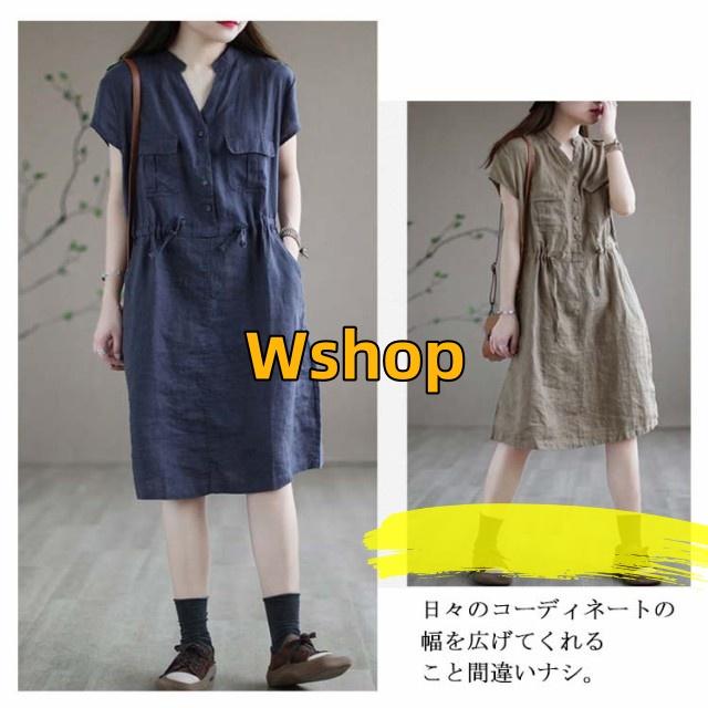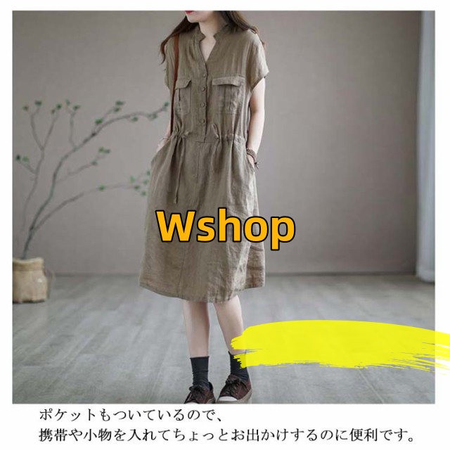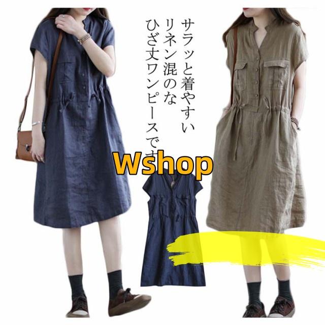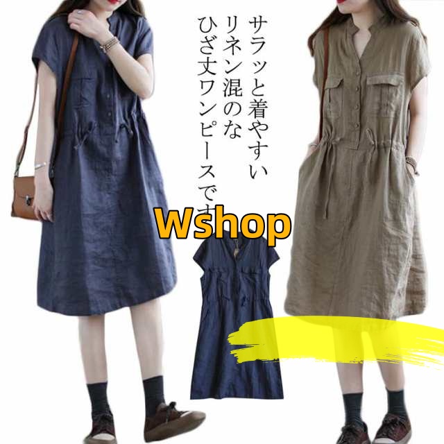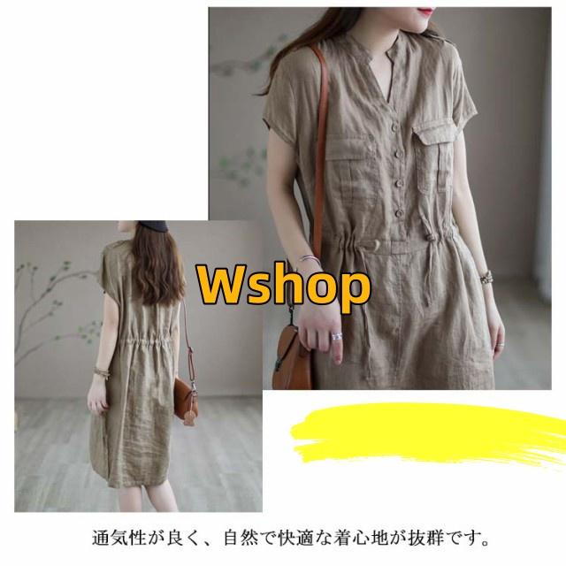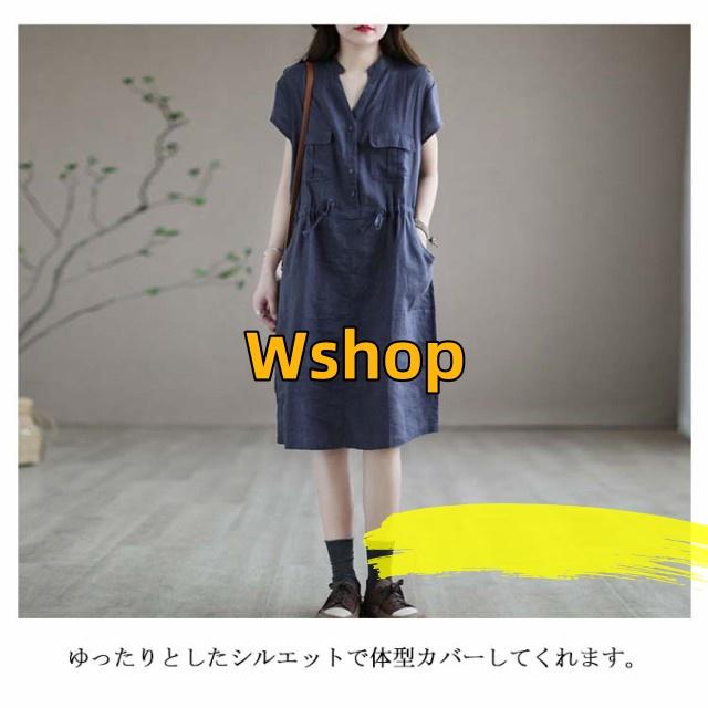 レディース 送料無料 おしゃれ シンプル 綿麻 体型カバー 癒され系 無地 ワンピース 森ガール エレガント 半袖 ベルト紐付き Aライン ゆったり 透けない 大きいサイズ お出掛け 夏 上品 大人 通勤