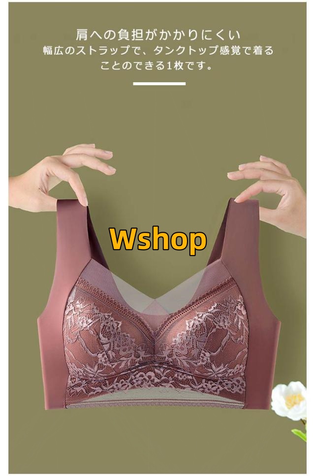 | 胸を小さく見せるブラ。フェミニンな花柄レースのブラジャー。 アクセントには透ける素肌がセクシーな、シアー生地を贅沢にあしらいました。 肩への負担がかかりにくい幅広のストラップで、タンクトップ感覚で着ることのできる1枚です。 窮屈さを感じにくいノンワイヤー仕様でありながら、自然な上向きバストを叶えてくれる3Dパッドや脇高設計で、女性らしいボディラインに仕上げてくれるひと品。 通気性が良いのでむれにくく、汗をかきやすい季節にもさらりと快適に着ることが可能です。 リラクシーな着用感は、おやすみ前や休日のリラックスタイム、スポーツなどのアクティブなシーンまで、幅広くお使いいただけます。 | |