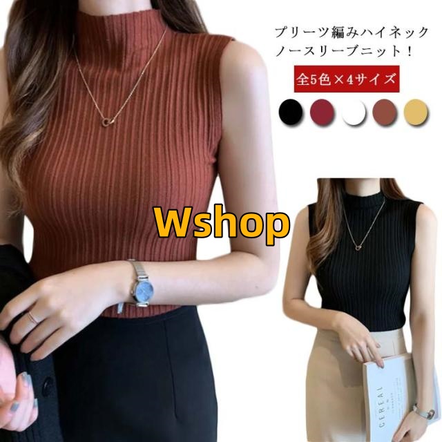 レビュー高評価商品 多機能デザイン レビュー高評価 サマーニット フィット レディース 軽量仕様 トップス タートルネック ハイネックニット 今だけ ハイネックノースリーブ ストレッチ プリーツニット 全5色 ノースリーブニット ニットタンクトップ インナー 即納対応中