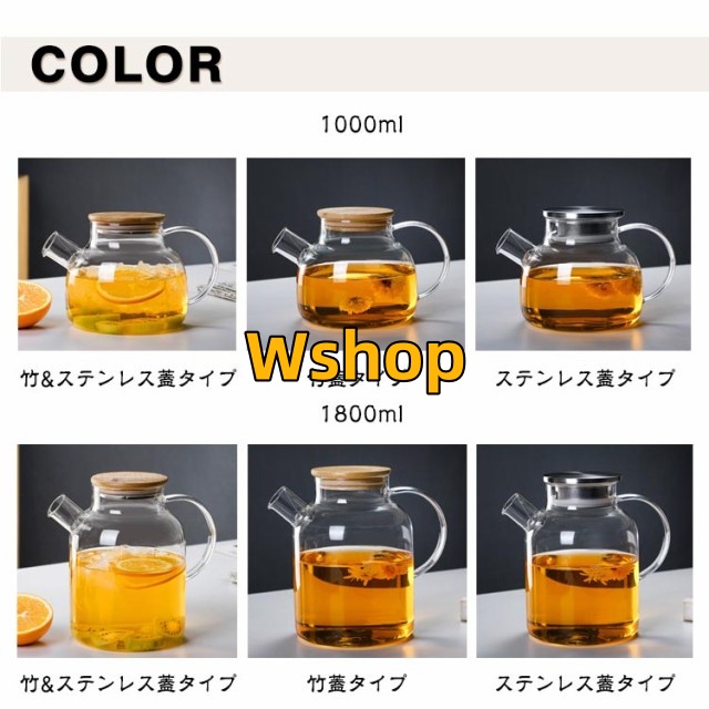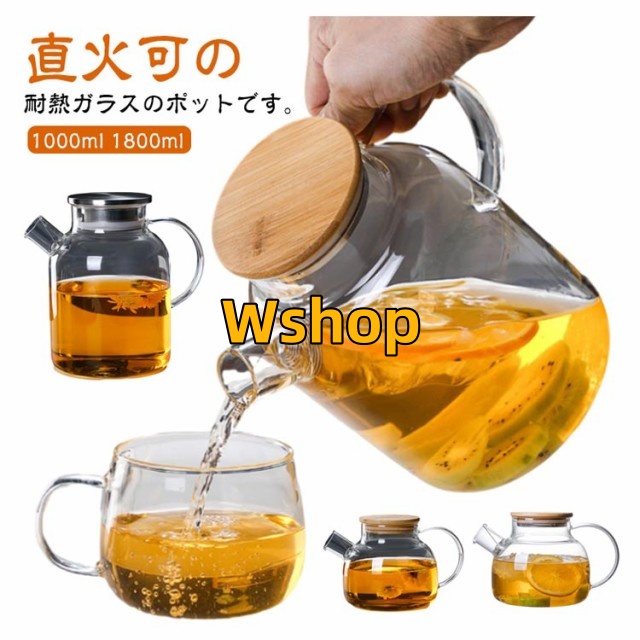 直火電気ケトル対応 1000 水だし 大容量 耐熱 冷水筒 洗いやすい コーヒーポット 直火 ガラスポット ホウケイ酸ガラス ガラスピッチャー 冷水ポット 麦茶入れ ガラスポット ティーポット 耐熱ガラス ステンレス茶こし 1800 やかん ガラスケトル
