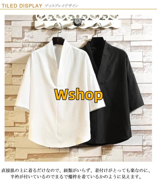 | M?5XL【2枚セット】 衿元を手軽にかっこよくするシャツ型半襦袢。 直接肌の上に着るだけなので、紐類がいらず、着付けがとっても楽なのに、半衿が付いているのでまるで襦袢を着ているかのように見えます。 着物や作務衣、甚平、浴衣などのインナーとして着用いただける衿付きの男性用トップスです。 シャツ単体としてもお使いいただけるおしゃれな1枚です。 | |
