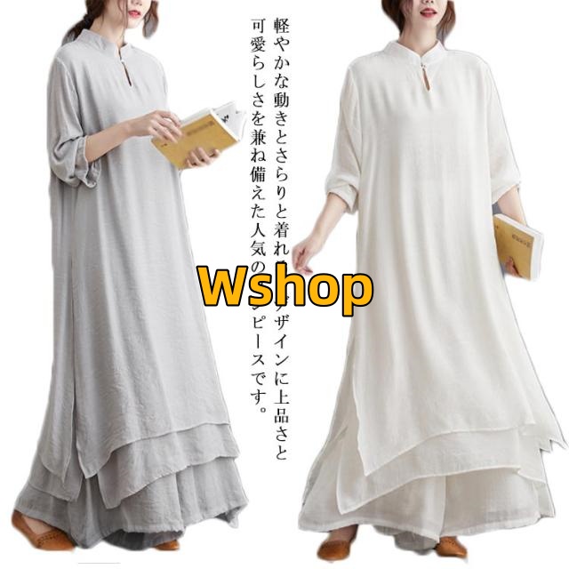 ワイドパンツ ゆったり春夏秋 新作 民族風 上下セット 中国風 送料無料 2点セット レディース ワンピース マキシワンピース かわいい マキシ丈 ワイドパンツ ロングパンツ ロングワンピース 中華風 チャイナドレス