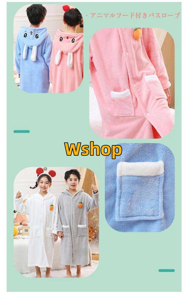| ・入浴後に羽織るだけ! ・アニマルフード付きバスローブ ・すばやく吸水してサラサラ! ・お風呂上りはもちろん、スイミングなどの習い事や海水浴などレジャー後にも使える! | |