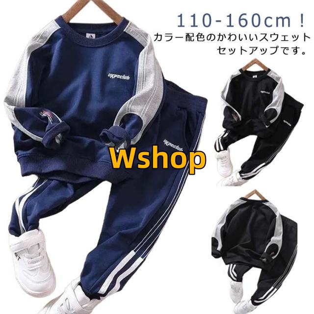 キッズ 小学生 ジュニア ジョガーパンツ トレーナー 110 120 子供服 スウェットトレーナー 130 スウェット ブラック スウェット パーカー 通学 上下セット 通園 春 長袖 男の子 ジャージ セットアップ ネイビー 冬 150 韓国 黒 秋 紺 140 配色 カジュアル